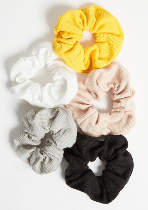 5 Pack Yellow Ribbed Knit Hair Scrunchie Set Scrunchies